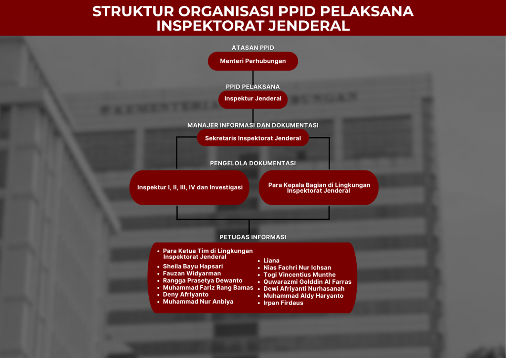 Sejalan dengan amanah Undang-Undang Nomor 14 Tahun 2008 tentang Keterbukaan Informasi Publik, Kementerian Perhubungan telah membentukan Pejabat Pengelola Informasi dan Dokumentasi (PPID) dan Pedoman pelaksanaan layanan informasi publik  yang ditetapkan melalui Peraturan Menteri Perhubungan Nomor PM. 46 Tahun 2018 Tentang Pedoman Pengelolaan Informasi dan Dokumentasi di lingkungan Kementerian Perhubungan.